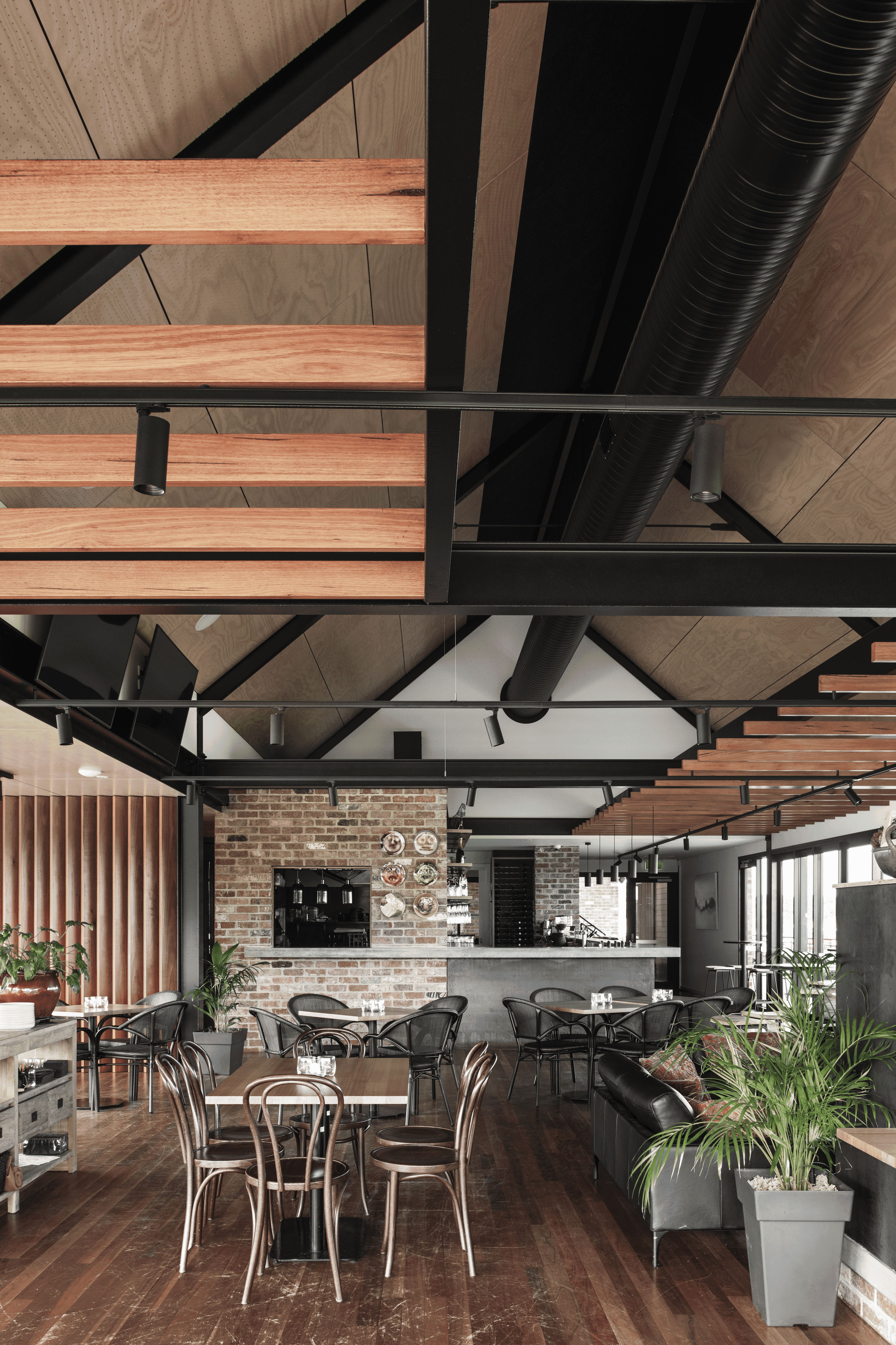 Generous decks on both sides of the building provide additional elevated viewing, while the upper level deck has bird’s eye views over the competition arenas and to the lake and Tootgarook Swamp to the west. The building has a hybrid structure of a footings system of hardwood piles and a super structure of a steel frame, as a result of the location on a wetlands environment.
