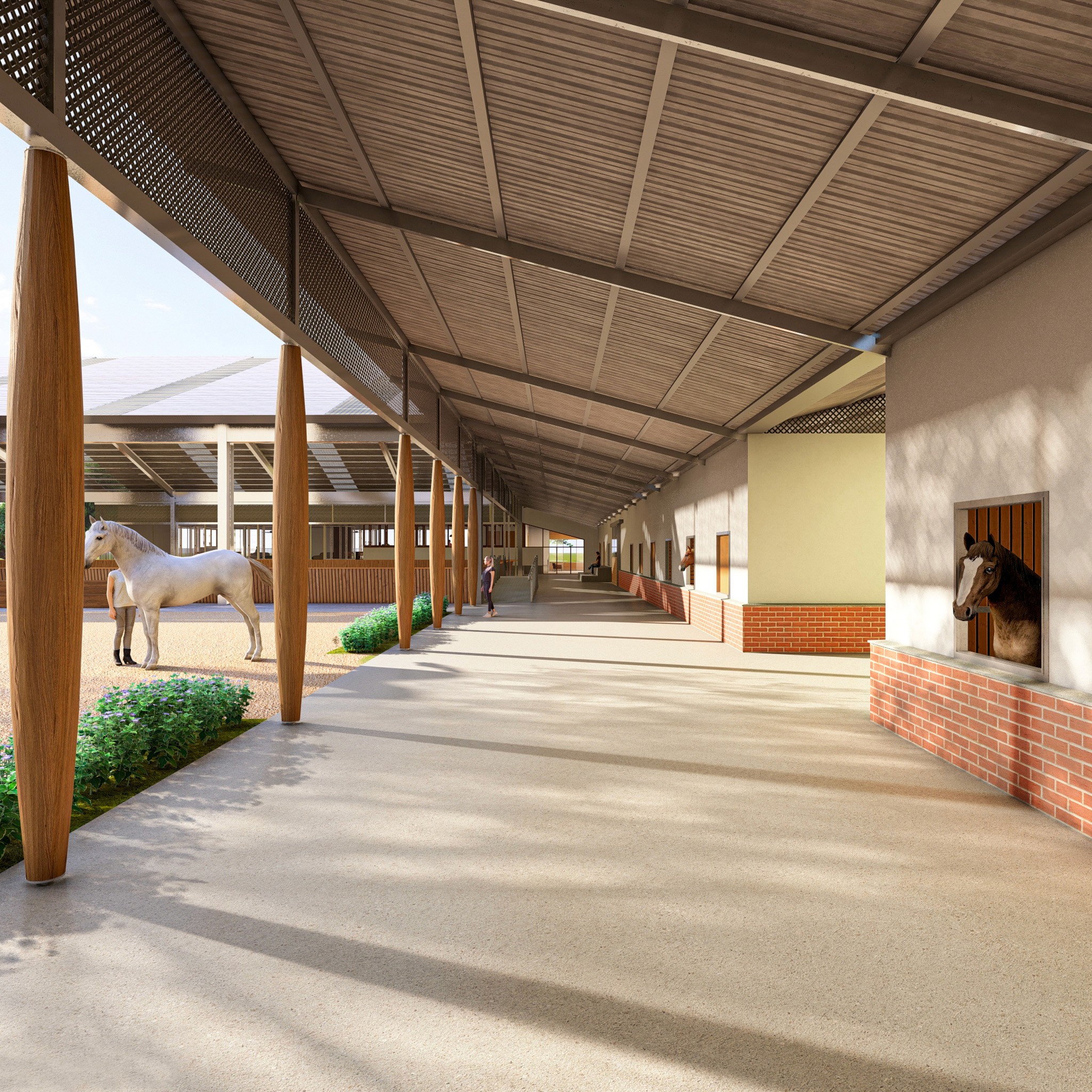 Oakwood has a new property at Nar Nar Goon, west of Melbourne, and will develop a new facility to serve the needs of future generations. The site is a degraded grazing and poultry farm, with the proposal set to rehabilitate aspects of the endemic ecology. This will include an enhanced wetlands environment supplied with water from the roof of an indoor arena.