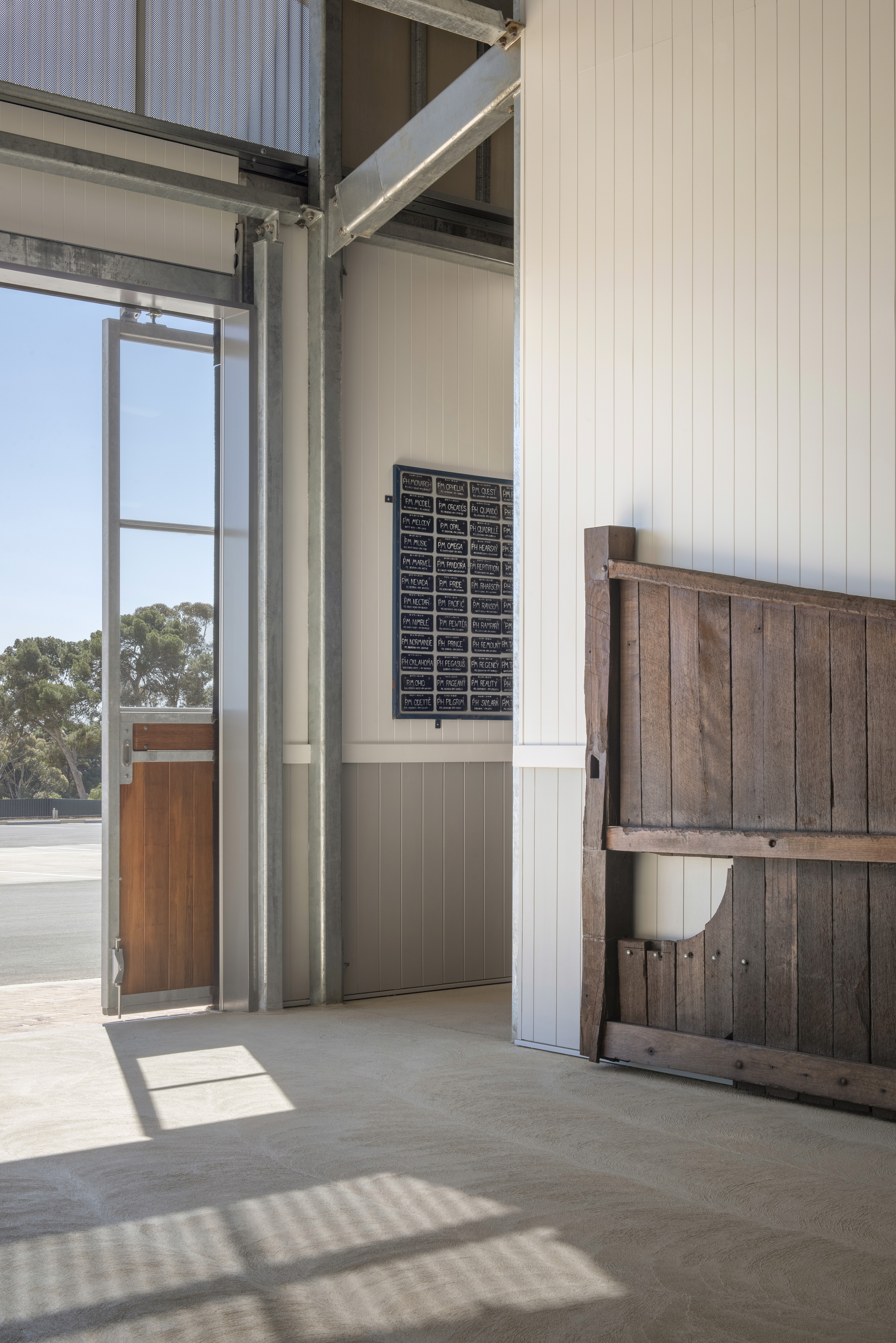 The paddock design is a significant feature of the site, allowing for horses to eat and drink in a group shelter and place less stress on the pasture. The paddocks have been sown with native pasture grasses. The project was designed and constructed under pressing time constraints, driven by the development of a major new hospital on the old barracks site.